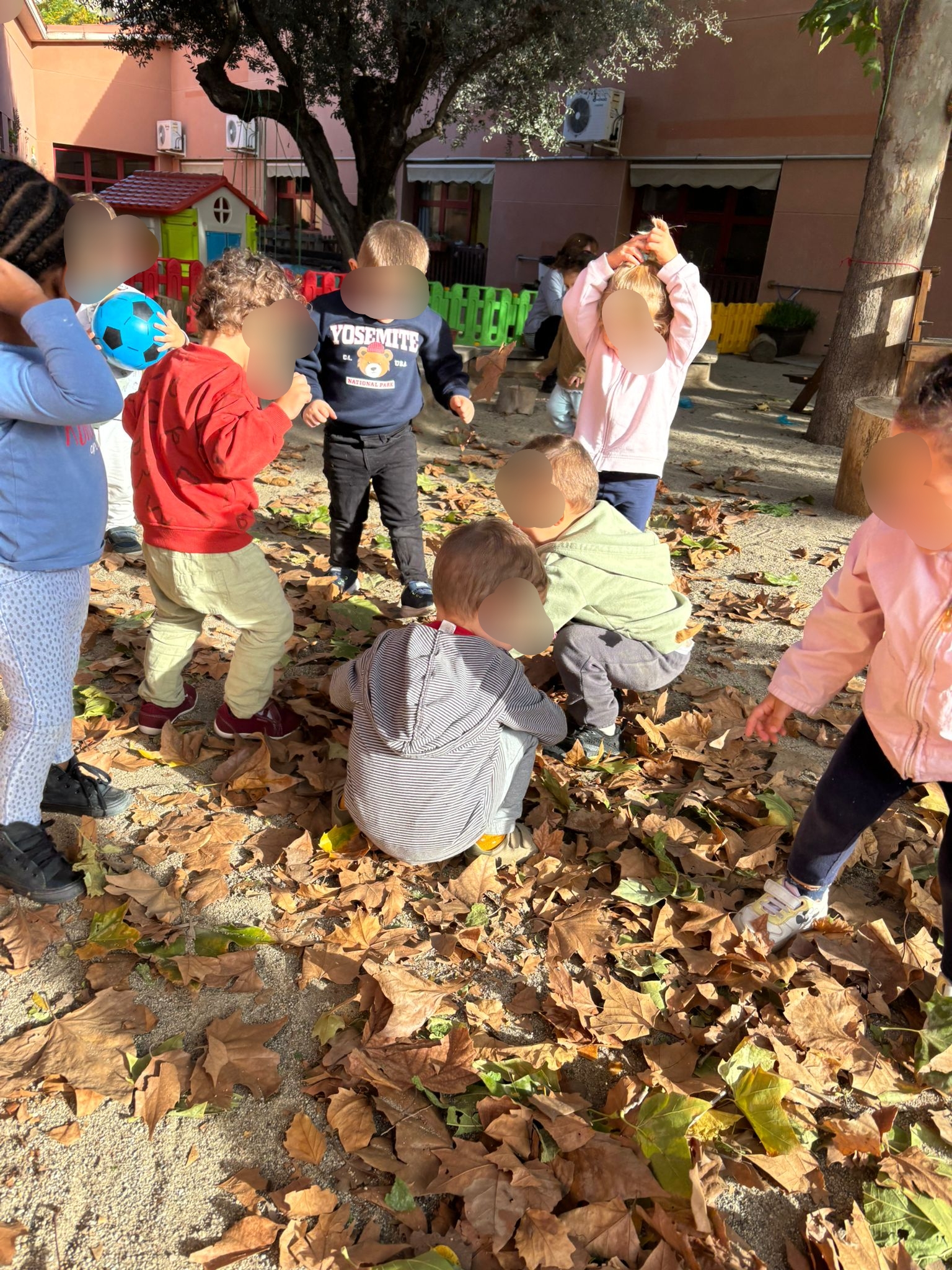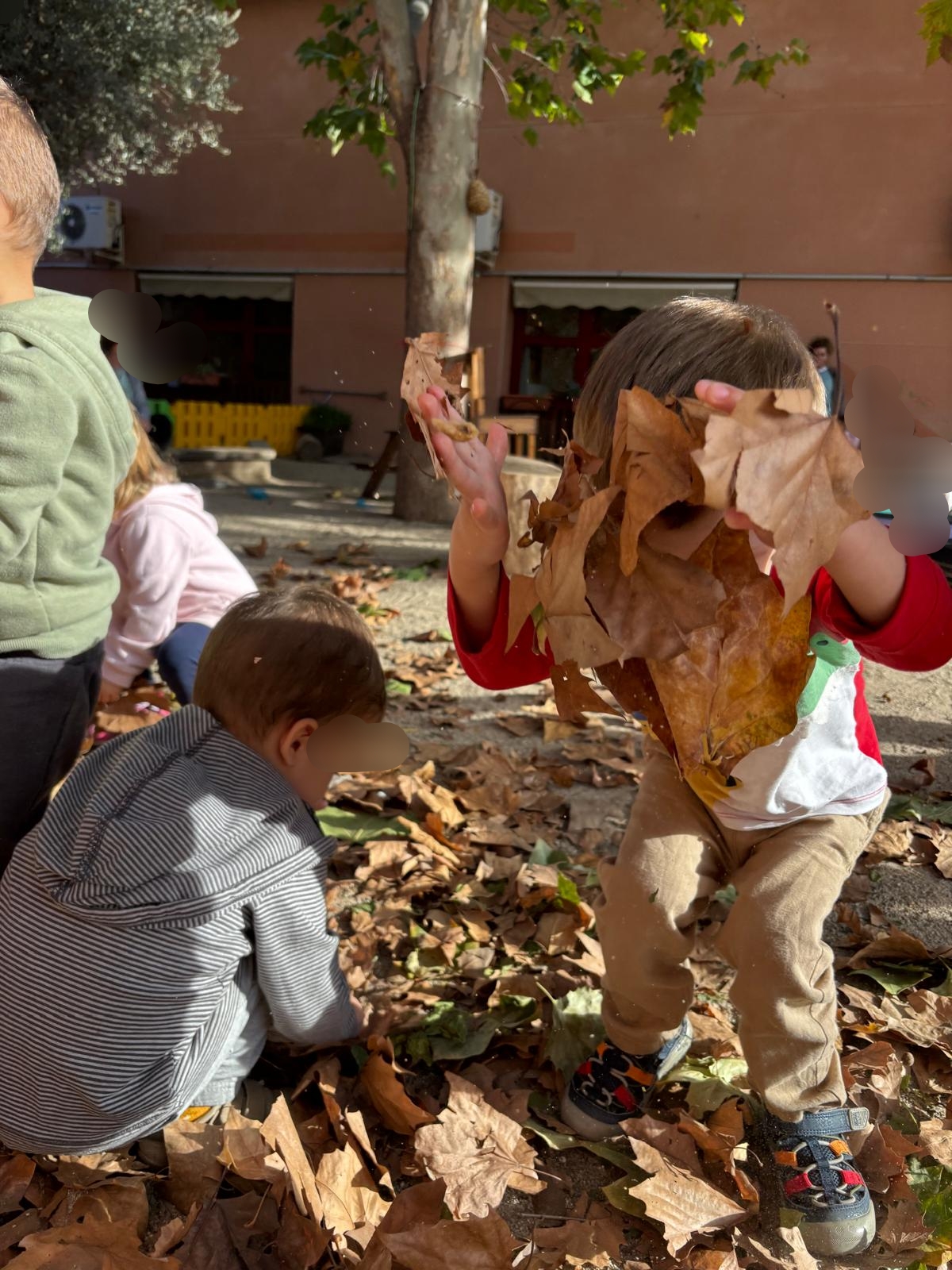 Amb l'arribada de la tardor ens trobem el pati ple de les fulles seques que van perdent els arbres.