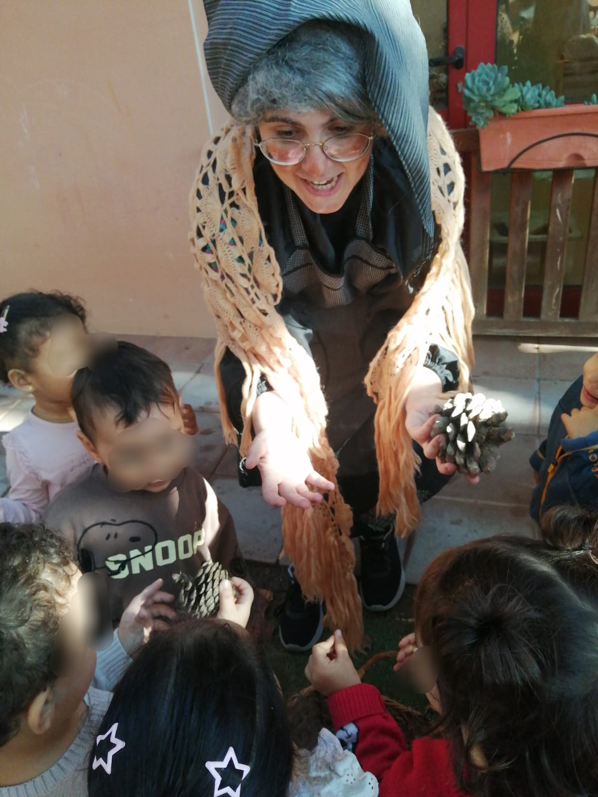 Vam rebre la visita de la castanyera que venia carregada amb un cistell de pinyes des de la muntanya.