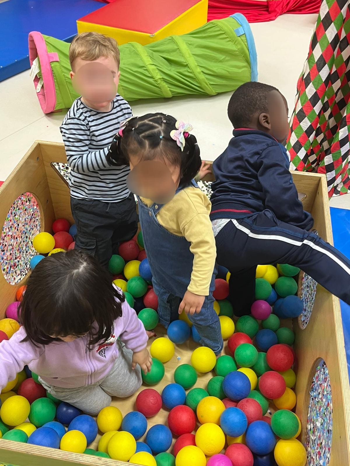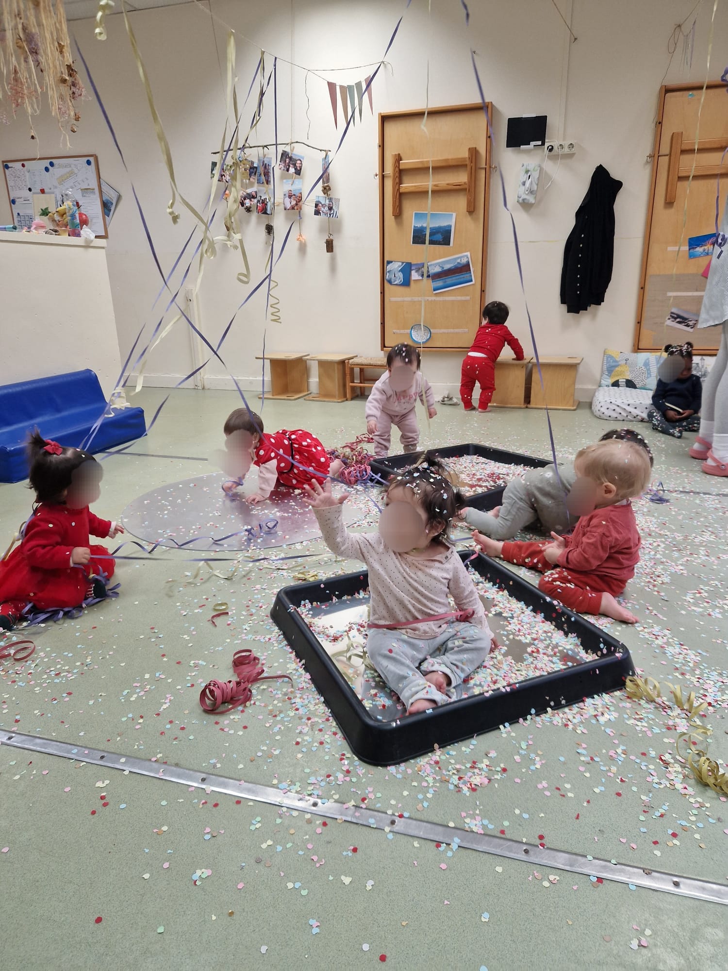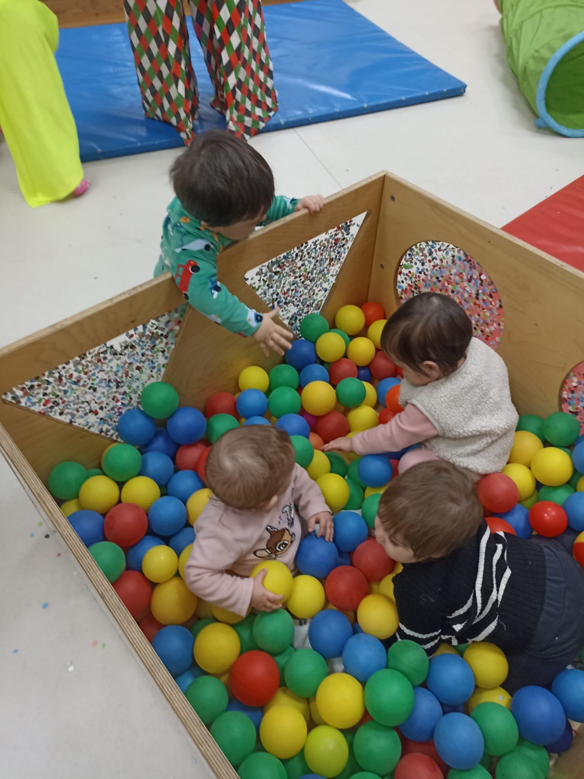 ... hem jugat i experimentat amb confeti i serpentines... i a la sala amb la piscina de boles de colorins...